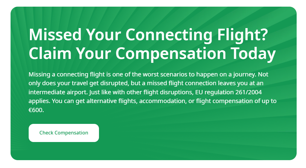 Missing a connecting flight due to delays can be frustrating and expensive. Skycop helps passengers claim compensation under applicable regulations, including reimbursement for costs like accommodation or rebooking.