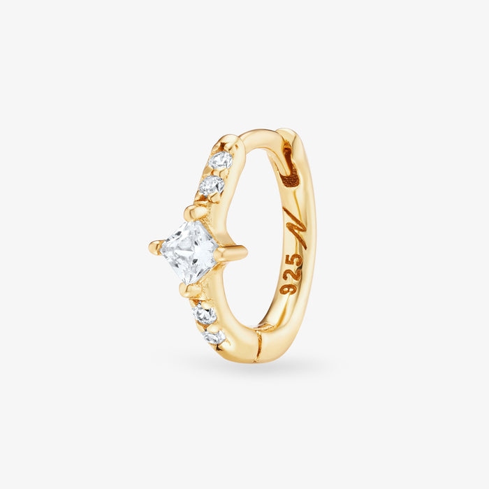 Rym Blanche presents a different aesthetic, even a bit, with a sense of subtlety and delicate detail. The earrings are made of fine silver 925, gilded with 18-carat gold, making them durable and classy. The ear buckle style is worn with white stones that create a subtle sparkle, ideal for everyday life or the workplace. Rym Blanche is not too high (1.2 cm) but stylish, so it suits the needs of those who want an elegant accessory without it being too loud. Similar to Diana Blanche, they are waterproof, can be used regularly, and come with a 1-year warranty. The design also offers a 60-day money-back guarantee on the purchase, ensuring the purchaser can use the earrings without fear of returning the item.