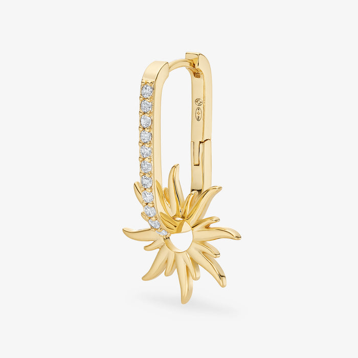 Glow earrings are a great choice for those who like statement jewelry. In contrast to the other two designs, Glow has a statement design. These earrings are crafted of fine silver 925 with an 18-carat gold plate; the loop is shaped like a sun and is an eye-catching feature when worn with an outfit. Glow earrings are easy to wear, with a diameter of 2 cm, and give you a bigger presence and a better fit for the occasion (perfect fit) during an evening or party, or any other occasion when you wish to make your accessories prominent. Glow earrings are practical despite their size and special design. The waterproof coating means the phone can be worn without worry, and the 1-year warranty ensures quality does not take a back seat. The 60-day fund-back policy is also an opportunity for Nebuleuse buyers.